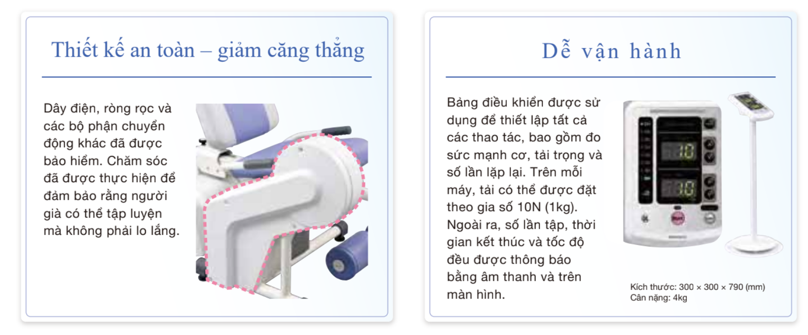Thiết bị tập vận động cơ trong phục hồi chức năng của Minato là dàn máy tập PHCN là dụng cụ hỗ trợ bệnh suy giảm sức năng vận động, yếu tay chân sau tai biến, phẫu thuật chấn thương chỉnh hình, đột quỵ tập luyện lại cử động cơ bản một cách nhẹ nhàng, giúp cải thiện tuần hoàn máu và phục hồi sức cơ, hoạt động vận động của cơ thể. Máy có ưu điểm tâp cho người cao tuổi để duy trì cuộc sống bình thường hàng ngày một cách độc lập.